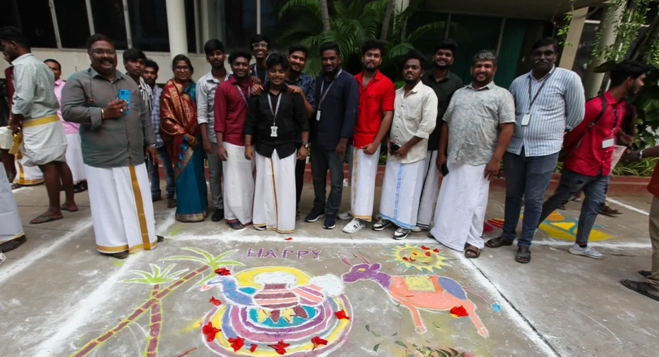 Venue – Prasad Studio Office As part of the festival celebrations, employees enthusiastically engage in traditional games.